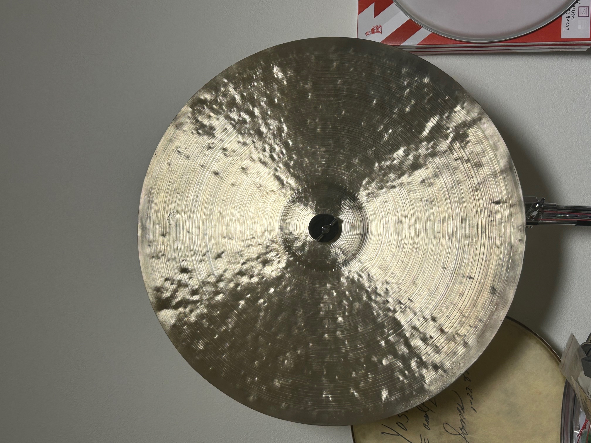 昨日、買い付けいたしておりました、Lius Cymbal3枚が届きました。特に23”二千六百三十二gSizzleがお勧めの1枚、私はブライアンブレードさんのトップサイドCrashのイメージで買い付け致しました。素晴らしい響きの個性あふれる1枚、こちらもShizzleホールが6個空いておりますが、Sizzleはお好みで簡単にインストール可能です・・・Lius 奇数サイズは中途半端なピッチにならず奇数サイズでしか出ない独特の奥の深い世界観が有ると感じており、強くお勧めさせて頂きます。