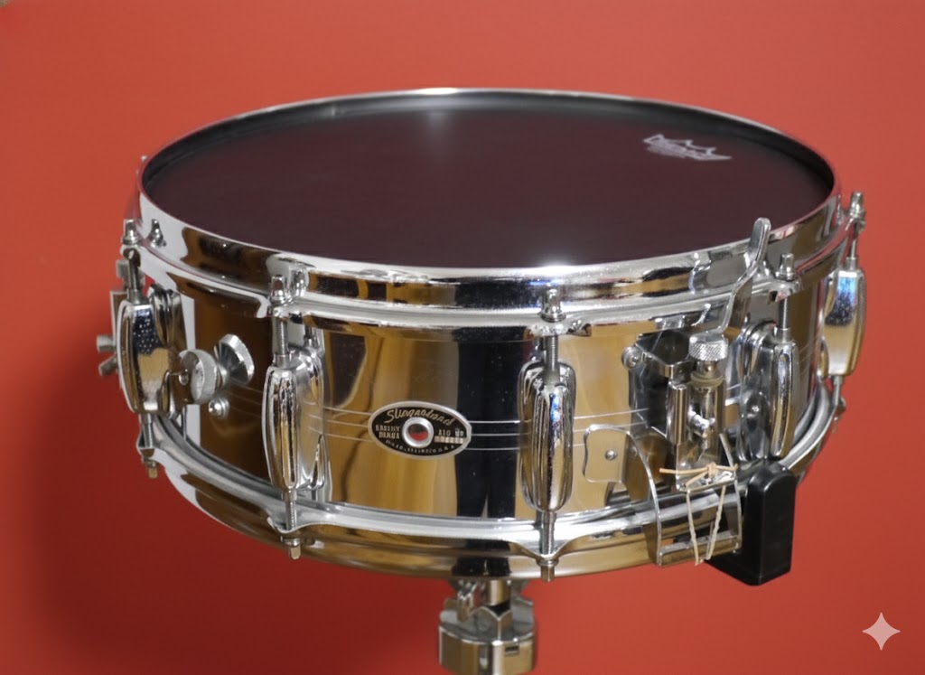 店頭在庫 Lius 21″ 2193g Patina / Lius Old K Tribute 23″ 2632g 6Sizzle(お好みで装着可能、Sizzleホール有)/ Lius 15″ Hihats 1089g & 1210g Patina / Dunnett Raw Finish Stainless Steel 初期model/ Slingerlamd Radioking Chrom Over Brass Snare / Chicago R&D Classic Snare (忠実にRadiokingを再現)