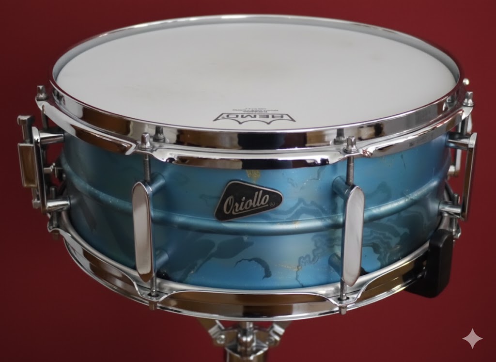 Oriollo phantom 55 Garafitti Alumi Snare・・・セルビア製 非常にレアな素晴らしい音圧の美音スネアSnappyのキレも素晴らしく音域が広く、ご存知に方も少なく、羨望の眼差しになる事・・・必然です!グラフィックも綺麗で、この様なSnareを主有されている方は少なく、あまり多くに方には教えたくないが本音?